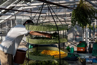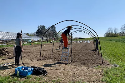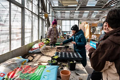 Wir produzieren eigene Setzlinge in den Gewächshäusern und können so den Pflanzenkreislauf von den letztjährigen Pflanzen über das Saatgut zu neu heranwachsenden Pflanzen selbständig schliessen. Im Gewächshaus finden die Setzlinge ideale Licht- und Temperaturverhältnisse und können so schon viel früher gezogen werden, als dies im Freiland möglich wäre. Wir ziehen viele verschiedene Gemüse sowie einige Blumen und treffen uns regelmässig, um die Setzlinge gemeinsam anzubauen und zu pflegen. Damit sich die ganze Gartengemeinschaft an den eigenen Setzlingen erfreuen kann, verkaufen wir diese zu günstigen Preisen und veranstalten im Frühjahr eine Setzlingsbörse. Zudem produzieren wir auch Setzlinge für die Tomatenhäuser und das Sagezu-Projekt.