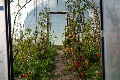 Wir bauen Tomaten an! Da Tomaten mit einem Dach über dem Kopf am besten wachsen, haben wir uns in einer Arbeitsgruppe zusammengeschlossen und bauen unsere Tomaten in einem Folientunnel, unter Glasdächern und im Gewächshaus an. Weil wir uns gemeinsam organisieren kann die Tomatenzucht auf wenige grosse überdachte Strukturen beschränkt und gleichzeitig auf viele kleine Privatgewächshäuschen verzichtet werden. Nebst der gemeinschaftlichen Pflege der Kulturen sind wir in der Tomatengruppe dazu bestrebt, gezielt Saatgut anzupflanzen und zu züchten, die an die Bedingungen und Bedürfnisse im Grünhölzli angepasst sind. Das heißt wir selektieren nicht nur besonders aromatische Sorten, sondern auch Arten, die beispielsweise Resistenz gegenüber Braunfäule aufweisen. Solche positiven Eigenschaften wollen wir dann durch Saatgutgewinnung der besten Sorten und entsprechender Kultivierung im nächsten Jahr weiter züchten.