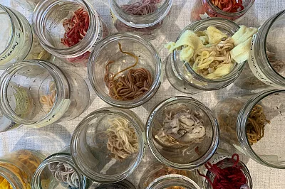 Wir treiben es bunt! Im Färbergarten kultivieren wir ein- und mehrjährige Färberpflanzen wie Färberwaid und Mädchenauge. Aus ihren Blüten, Blättern, Früchten, Rinden und Wurzeln gewinnen wir Naturfarben, die wir mittels historischer Rezepte und modernen Techniken zu Tinten, Textil- Speise- und Kosmetikfarben verarbeiten. Auf Textilien, Papier und anderen Oberflächen experimentieren wir mit den gewonnenen Farben und verschiedenen Färbertechniken. Dabei haben wir zum Ziel, altes Wissen zur Naturfarbgewinnung neu aufleben zu lassen und stehen in regem Austausch mit dem Flachsprojekt und dem Medizinalgarten.