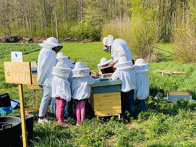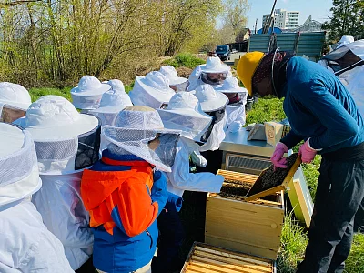Sie liefert uns Honig und Wachs, bestäubt unsere Nutzpflanzen und ist der Inbegriff des Fleisses: Die Honigbiene. Die Leistungen der Bienen uns immer wieder aufs Neue zum Staunen. Honigbienen gehören zu den sozialen Insekten, sie leben in grossen Völkern zusammen, die fast wie ein eigener Organismus funktionieren. Erleben Sie mit Ihrer Klasse während einer Führung an unserem Bienenstand auf dem Gartenareal Grünhölzli die Faszination Biene. Eingekleidet in Schutzanzügen schauen wir bringen mit den Kindern ein Bienenvolk an und erläutern das Zusammenleben und Tun dieser Insekten. Die Schülerinnen und Schüler bekommen Einblick in die Arbeiten einer Imkerin, das Bienenjahr und erfahren die Wichtigkeit der Bestäubung.